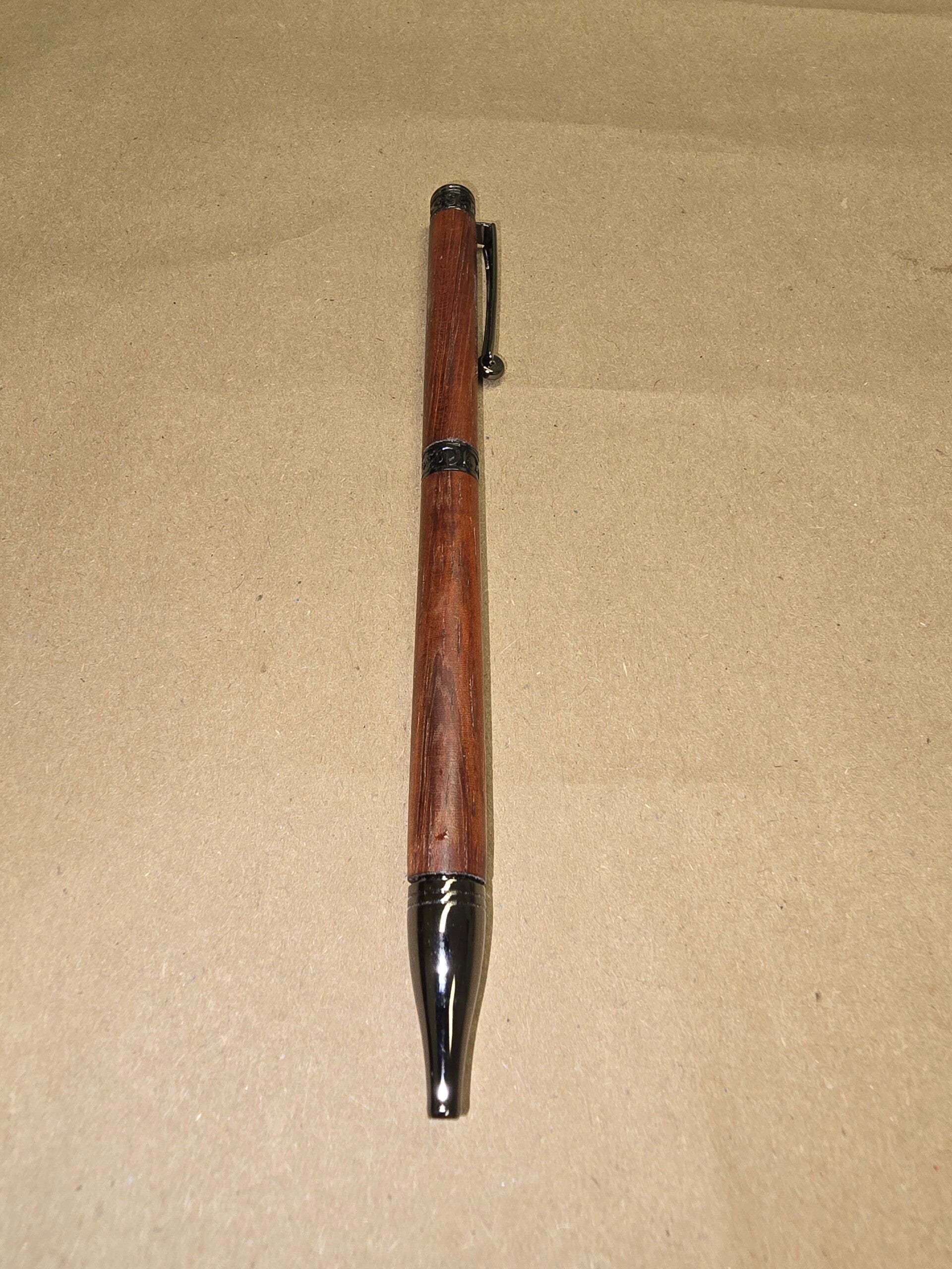 Si vous ne deviez regarder qu'une seule création, nous vous recommandons nos stylos en bois. Chaque stylo est unique, fabriqué avec soin et reflète notre expertise dans le tournage sur bois. Découvrez également nos autres petites créations telles que les bouchons de vin et les ouvre-bouteilles.